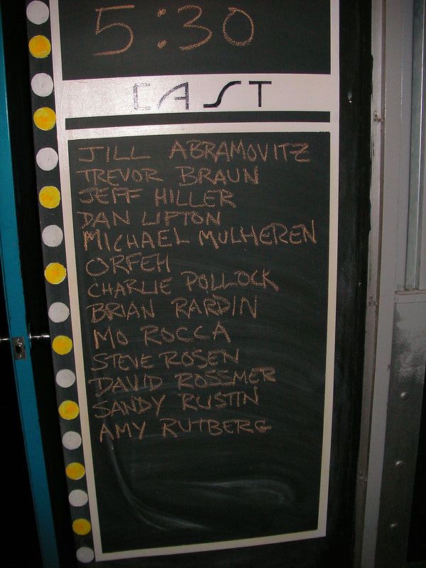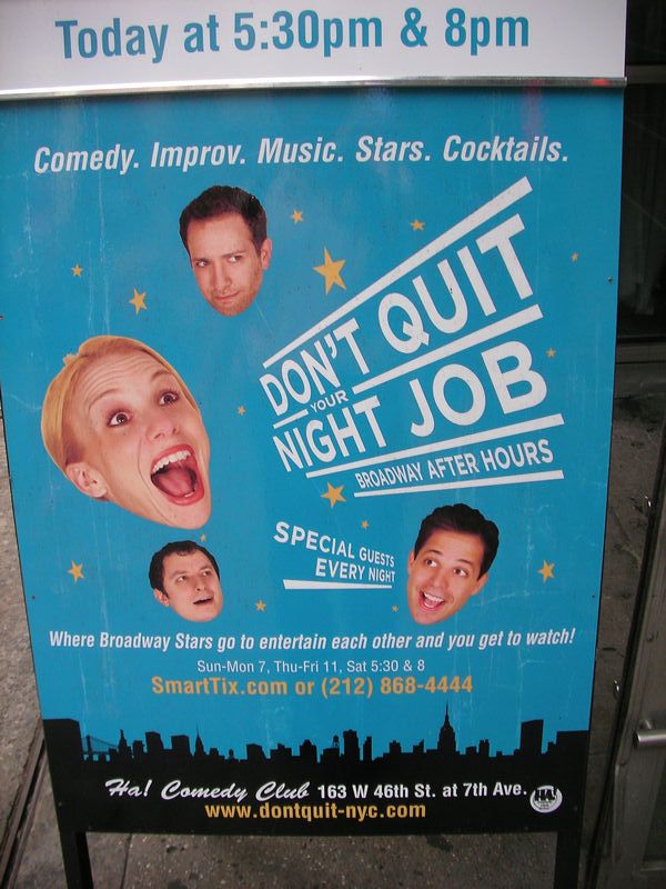 日時:2007年6月5日20:10-21:45 劇場:Linda Gross Theater 料金:65USD/2 + TKTS手数料3USD 座席:ORCH G101(後ろから2列目右端) 演出:Michael Mayer 衣装:Michael Krass シーン:Derek McLane 照明:Jules Fisher and Peggy Eisenhauer 脚本:Keith Bunin 作詞・作曲:Patty Griffin 出演: Molly:Irene Molloy Duane:Matthew Morrison The Man:Skipp Sudduth The Woman:Mare Winningham Synopsis:(Playbill より) Duane and Molly road-trip in an old pick-up truck from the southern tip of Florida to the Northwest corner of New York, with many detours along the way. This new musical explores the pursuit of love and family, and the geography of the American dream. チケットはTKTSで購入したのですが、TKTSの掲示板ではこ の作品にPの表示。これはPLAY(ミュージカルでない)という 意味なので(?_?) やっぱり表示が間違っていたようです。 Spring Awakening と同じ演出家、同じ劇場ということでプレビュー 期間中にも関わらず、上演期間が延長されたとききました。 ここははじめてくる劇場です。 劇場もレンガ造りで元々教会かなんかだったような風情あり。 私が座ったのはF101列、最後列がG列でした。101といっても 客席右端です。TKT購入で65/2+TKTS3 + 35.5USD 確かに劇場は満員、開演10分前には1割くらいしかいなかったのに いったいどこでどうやって沸いて出るのか? 年配の観客多し。 舞台は正方形に近く、右に送電塔の列、左にガスタンクの列、 舞台後方の上方にバンド。 舞台の真ん中には小型トラックがでんと置かれています。 舞台転換の際には黒子さんがよっこらしょとおしてトラックを動か します。 このトラックが、レストランになったり、チェックイン カウンターになったり、 ベッドになったり、トラックになったり するのです。 キャストは4名、ロードムービー形式で、主役カップル が旅をするのにあわせて脇役コンビがさまざまな役に着替えて出てきます。 男がエンジンを届けに行くニューヨークまでのトラック移動に女が 同席します。 ちょっと前にベッドインしたこのカップル、あれは気の迷いだった、 とか女は言い出して男にお預けを食らわすのですが、実は妊娠して いたということが女から男に知らされたところで大きな転機。父親は 確実にその男、男は盛り上がったあげくに、プロポーズ。でも結婚 しようとすると ほんとーにいいのかとケチをつける中年カップルに あったり。 他にもいろいろあってさんざんゆれる気持ち。 でも最後には流産してしまって、男は女を病院に置いたままにげちゃう。 女はおばあちゃんのところで過ごします。 意を決して男が再度プロポーズをして大団円。 いやー随所に泣かせどころがあります。英語がわかるともっと泣ける だろうなあ。そして脇役のおばさん俳優がすごい!見事なまでに キャラクターをかえて登場し、そして朗々と歌いあげるすばらしさ! 何度もショーストップになりました。 このキャストのCDが出たら欲 しいなあ。 セットなどもあまりお金がかかっていませんし、キャスト も4人だけです。こういう小さな舞台をうまく作れてしまうのがニュー ヨークの底力というものでしょう。 暇があれば見て損はありません。劇場も風情があります。 題名:Cirkus Inferno 日時:2007年6月3日12:00- 劇場:The New Victory Theater 料金:ORCH 35USD 座席:ORCH A14(1階2列目センターブロック右端) 制作:Jonah Logan & Amy Gordon 演出:Rene Bazinet 出演: Amy: Amy Gordon Lucky: Jonah Logan Filp: Nate Cooper M. Justa Parfait: Anthony Venisse 子供づればかりです。私の隣のカップルは乳飲み子 と幼稚園くらいの子供二人つれてきてました。 売店には、ピエロの鼻、靴、ブーメラン、ジャグリング ビーンバッグ、等を売ってました。ピエロの鼻は完売、 まあ2USDだからねー、私もあったら買うかも。 ビーンバッグは子供用のとても小さなやつ、ちょっと 投げてみたら子供たちがよってきました。 舞台には左右に箱、背景は古きよき時代?のポスター。 Hound Hades - Alive One Boday 3heads Roxanne Rolls - Heck on Wheels Jet Skates Dynamnite in a short skirt Rocket Johnny - The Human Cannonball Hulalula - The fire queen(これにウクレレぶら下がり) 前説では「Pager もBaby もスイッチオフにしろ!」 巨大ポップコーンを持って2階にクラウン登場。2階から降って くるポップコーン(汗)水鉄砲も持っていて上から水がとんできます。 頭上からポップコーンと水と紙ふぶきを浴びました。 落ちてくるポップコーンをつかんで食べちゃいました。 2階からクラウンたちがポールで滑り降りてきて舞台の開始! 一応しゃべりはありますが、ほとんどないも同然、英語がわから なくてもまったく問題なし。 これからさきは体を張ったコントの連続。目前で爆発がなんどか。 ローラースケートで転んで至近距離でキャストの大股開きも。 最前列っていろいろ起きるなあ。ローラースケートタップ なんてのもありましたよ。 フィナーレは風船が膨らんでいってどっかーん。いろとりどりの チャフが場内充満。 けっこう楽しかったです。子供達が大半の客席も わーわーきゃーきゃー。 題名:Don't Quit You Night Job 日時:2007年6月2日17:35-19:10 劇場:Ha! Comedy Club(163 West 46th Stre