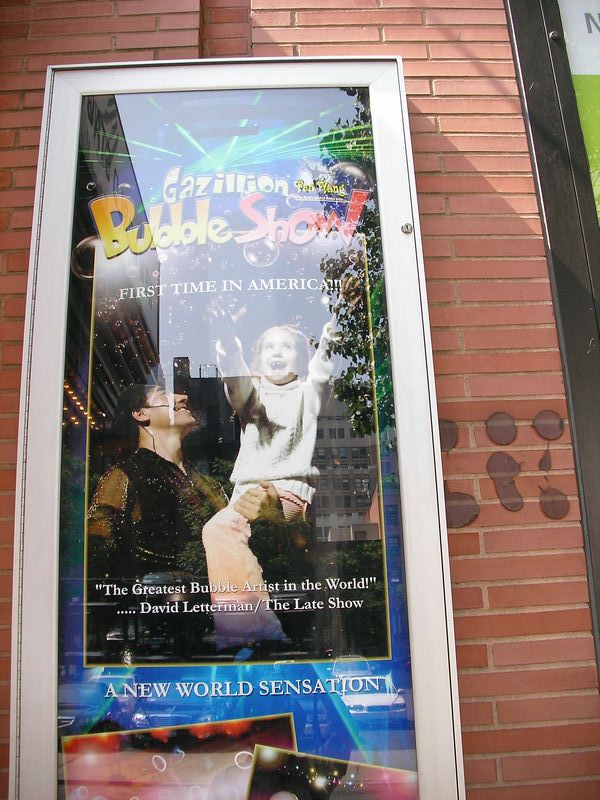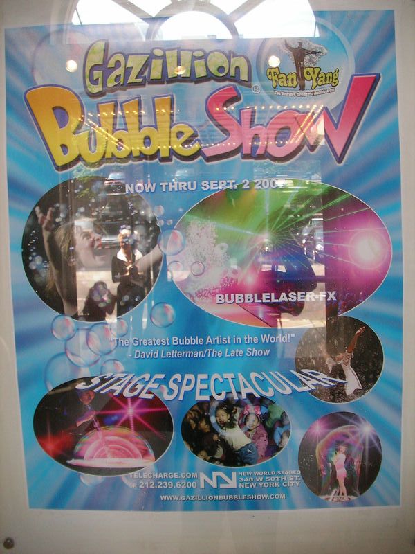 × [PR]上記の広告は3ヶ月以上新規記事投稿のないブログに表示されています。新しい記事を書く事で広告が消えます。 題名:Gazillion Fan Yang Bubble Show 日時:2007年6月2日11:05-12:25 劇場:New World Stages 内 Theatre 3 料金:30USD(Broadwaybox割引) 座席:F109(6列目まんなか) 制作:FAN YANG & NEODUS CO., LTD シルクドソレイユが好きなら見るべし、といったキャッチが書かれていたので 見にきてみました。 この午前中の公演はTKTSに出てませんでした。TheaterMania 割引も午後5時 の回のみ。客席は1割程度の入りでしょうか。私の後ろ1列目までしか客がいません。 前方も3割程度の入り。 このNew World Stages でAlterBoysやってるんですね。私の課題なのだけれどいまだに 見ることができていません。この劇場はミニシアターの集合体で4つ劇場があるようです。 劇場ロビーではもちろんシャボン玉セットとシャボン玉液を販売していました。 シャボン玉の中にはいって記念撮影というのもありまして20USD. 舞台は、シャボン玉につぐシャボン玉、手のひらやアイテムから次々とシャボン玉が 出現します。そして床に落ちても割れずにバウンド!シャボン玉の中にシャボン玉を つくり、そのまた中に煙をいれる。連結シャボン玉もあり。子供は手を伸ばしまくり! 大きなシャボン玉を上下につけて間に細かなシャボン玉、これが回転する!アイテムを 使って円筒形のシャボン玉を作り、その中にシャボン玉がたくさん入った円筒形のを シャボン玉を作る。大小2連を作って、中のシャボン玉に手を突っ込んで取り出す。 ちょっと飽きてきたころに生い立ちを左右のスクリーンでやってました。 子供を舞台にあげて1,2,4人がはいる巨大シャボン玉作成! 大人の時間もあり、カップルででてもらって、台を両方から持ってそこに シャボン玉をつくり I Love You と写す 最後はOcean of Bubble 、劇場全体がシャボン玉で埋まり、レーザー光線でまるで 海面のような雰囲気を作りました。煙だしておいて、シャボン玉をそのうえにもって いくのですね。最後の最後は巨大シャボン玉。 とにかくシャボン玉がたくさん出るだけで楽しくなる舞台です。 でもけっこう作成に失敗していたけれど、それが普通? 舞台で使っていたシャボン玉セットをロビーで20USDで販売、子供たちはくいついて ました。 PR 題名:Don't Quit Your Night Job 日時:2007年5月31日23:10-24:20 劇場:Ha! Comedy Club(163 West 46th Street) 料金:25USD(theatermania 割引) 座席:後方左より URL: http://www.dontquit-nyc.com/ 出演:STEVE ROSEN、DAVID ROSSMER、SARAH SALTZBERG、DAN LIPTON 説明:(公式Webより) Don't Quit Your Night Job is a hilarious sketch comedy/improv show about the theatre industry that comes to Broadway (or, near Broadway), after a wild sold-out engagement at Joe's Pub downtown. Conceived by Steve Rosen (Spamalot), David Rossmer (Nerds) Sarah Saltzberg (The 25th Annual Putnam County Spelling Bee) and Dan Lipton (The Coast of Utopia), this riotous, off-the-wall showcase changes at every performance and is growing from an underground hit into a mainstream phenomenon not to be missed! It features a rotating core cast of Broadway's brightest new stars from every show on the block, complete with surprise celebrity guests nightly. Special Guests set to appear in the premiere weeks of Don't Quit Your Night Job include Hank Azaria, Kristin Chenoweth, Brian d'Arcy James, Paige Davis, Jesse Tyler Ferguson, Dan Fogler, Hunter Foster, Kat Foster, Sutton Foster, Jane Krakowski, Marc Kudisch, Huey Lewis, Andrea McArdle, John McDaniel, Eric Millegan, Bebe Neuwirth, Kelli O'Hara, Lonny Price, Anthony Rapp, Michael Riedel, Tony Roberts, Seth Rudetsky, Peter Scolari, Christopher Sieber, Mary Testa, Patrick Wilson, B.D. Wong, and Adrian Zmed, among many others. Don't Quit Your Night Job was conceived as a way to benefit TDF's Open Doors student theater program, and that tradition will continue with a weekly donation on behalf of our special guests. ホテルのすぐ近くに劇場があるのでいってみました。 劇場は地下にあり、なんとなく潜り込んでいくかんじ。左右に広い客席に、舞台の右側に バンド。場内はテーブル席のみで、通常はもっと安い料金で芸人が色々 でているようです。今回はほぼ満席。 客の反応も上々でした。 ブロードウェイ出演のゲストを招いての即興コント集とでもいう舞台でしょうか。 TheaterMania 割引で25USD.これにミニマム2杯を必要とします。 私はシャンペン7USDとビール6USDに税サービスついて16USDちょい。 基本的には即興が主体で、客席から題をもらうこともあります。 最初に出たのは60秒で見せるオペラ座の怪人、これが舞台を見たことがある人には そうそう、そうそうという感じにできてます。そしてそれを次は30秒で、最後は10秒! 客席から、シチュエーション、場所、時間、キャストを貰ってショートコントを 作っちゃいます。ジムでウェイトリフティングをするシーンを、ヒップホップ風や マイム風やブロードウェイミュージカル風とか。。 メリーポピンズのBert役で出演している俳優がゲストで登場、なんとチムチムチェリー の替え歌を歌う!でもメリーポピンズを見たのはこの舞台の翌日だったので感動が いまひとつ、先に舞台を見ていればねえ。 のこぎり音楽で over the rainbow とくる