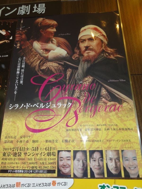 題名:シラノ・ド・ベルジュラック 日時:2011年2月4日19:00-21:50(途中休憩あり) 劇場:サンシャイン劇場 料金:カンフェティ割引S席3500円 座席:1階17列10番 原作:エドモン・ロスタン 翻訳:辰野隆 鈴木信太郎 演出:栗田芳宏 音楽:宮川彬良 企画・台本:笹部博司 出演:市川右近、安寿ミラ、深沢敦、小林十市、駒田一、栗田芳宏、石橋正次 演奏:ヴァイオリン:氏川恵美子 アコーディオン:大田智美 舞台の真ん中に丸い板の間その奥に気の階段舞台左右にはたくさんの椅子と衣装。 なんだか客層がいつものサンシャイン劇場と違います。お年を召したお嬢様たち ばかりというか、今はなき新宿コマにきた気分。意外と男性もそれなりにいます。 20代以下に見える方々が皆無?そ、そういう舞台だったのかー 最初は劇中劇の風情、劇場でなにするかみんなでバトルw シラノがでてきてシラノで決まり!7人で色々演じまくり、シラノだけがずっとシラノ。 もっと早変わりする、39stepsのようなものを想像していたのですが、そうでは ありませんでした。まあレミゼのアンサンブルみたいな雰囲気と言えばよいでしょうか。 この脚本は底本あるのかしら、かなり美文調です。すべて明白に語る口調で、まるで 歌舞伎を聞いているみたい。 うるっときたのはわかいもんが愛されてないことに気づくところ。 敵の弾にあたって死亡したのち、ボレロが伴奏で流れると死体が蘇ってすこしだけ ボレロ、会場どよめき。もうちょっと踊っていてほしいと私も思いましたよ。 それにしても芸達者そろいなのだが、芝居が長い。。 シラノの正体がばれたあとにも延々と長口上。ちょっとだれました。でも客席から すすり泣きが聞こえていたので、この客層を見事につかんだ演出だったのでしょう PR