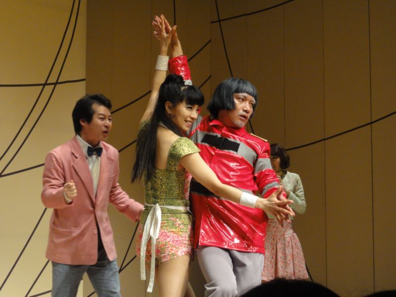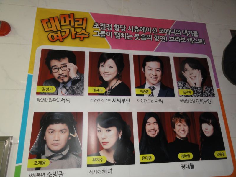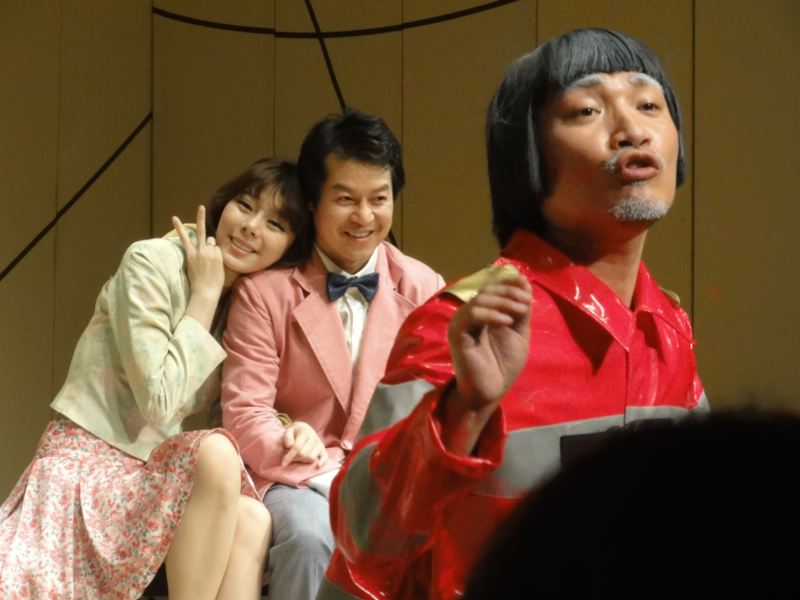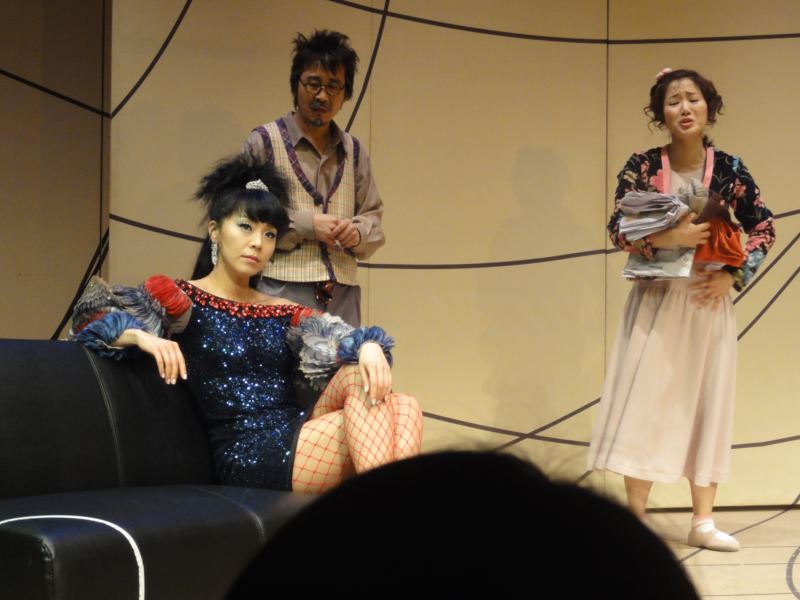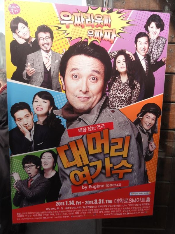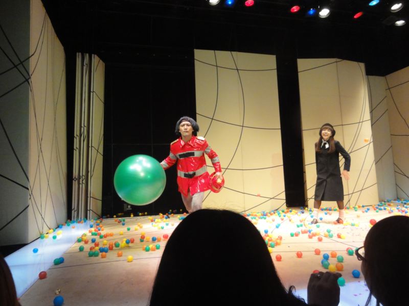 × [PR]上記の広告は3ヶ月以上新規記事投稿のないブログに表示されています。新しい記事を書く事で広告が消えます。 題名:禿の女歌手(대머리 여가수) 日時:2011年2月26日15:00-16:40 劇場:大学路・SMアートホール(대학로 SM아트홀) 料金:TKTS 12000KRW 座席:前方左側 http://nana-kato.tea-nifty.com/nana/2011/02/ktheater1.html 不条理劇でかなり面白い、という話を聞いて見に行ってみました。 大学路のTKTSでは7割引でチケットを販売してましたよ。 開場が開演20分前、劇場にはいると、すでに舞台の上に黒服のおねえさんがたっています。 このおねえさん、かなりかわいい。 帽子もコートも黒の全身黒づくめで顔には張り付いた笑い、そういう三人がぼーっと 立っていたり舞台の上を行き来したりして、なんだかよくわからない不思議な雰囲気を 醸し出しています。最初舞台の上にセットはなく、床と壁にうねうねとうねる白線が 書かれているだけ。後ろの壁はいくつかのパネルが組み合わせてあり、左右に動きます。 その間から出入りするキャスト。 開演時には客席は満員となりました。 開演時間で、黒服のキャストがおじぎをして、となりに立ったキャストが拍手!という 格好をしました。当然観客は拍手を始めます、、がおじぎをしたキャストはそのまま 靴ひもを結びなおすのでした(^^;) きれいに脱力されましたね。 それからラップで前説、どうやら日頃劇場でだめなことはなんでもOKと言っている ようです。食べるのも写真も電話もオッケー、飴を客席に投げいれながらやってましたよ。 芝居をしている最中でもキャストにカメラを向けるとにっこり笑ってVサイン、いやー こんな雰囲気の芝居は初めてです。 若いカップルの会話、中年夫婦の会話、さすがに動きがないところの会話劇はついて いけませんOrz 中年の部屋に消防士がきて、実はそこのメイドと恋仲だったり、消防士がきたのに とつぜん芸能大会になったり、黒服が出て消えたり、筋書きを追ってはいけないのですね。 当然客いじりなどもいっぱい。 フィナーレ?は全員でラップを歌いながらヒップホップで大団円。。。 と思いきや、 突然天井が抜けてボールが滝のように落ちてきた!キャストがそのボールを拾って 客席へ向けて投げつける!客からキャストへ投げ返す。 消防士が客席にして水鉄砲でぴゅーぴゅー、客席はわーわーきゃーきゃー。 極めて祝祭的なおわりかたでした。 なんかいままだよくわかんないなーと思っていたのが物の見事にリセットされて しまいましたよ。 カーテンコールが終わった後に黒服フリーズ みんなで舞台に登って黒服と一緒に記念撮影してました もちろん私も1枚。。 PR