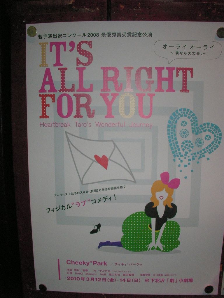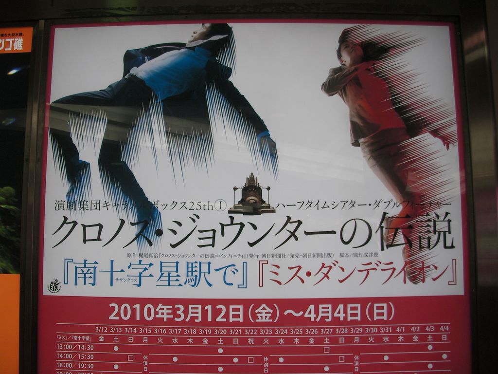 × [PR]上記の広告は3ヶ月以上新規記事投稿のないブログに表示されています。新しい記事を書く事で広告が消えます。 題名:Piper 第8回公演 「THE LEFT STUFF」 日時:2010年4月18日13:00-15:20 劇場:本多劇場 料金:6800円 座席:B列5番(2列目左端ブロック) 作・演出:後藤ひろひと 出演:Piper[川下大洋・後藤ひろひと・山内圭哉・竹下宏太郎・腹筋善之介] / 相武紗季 / 岡田義徳 ・ 川田広樹(ガレッジセール) 物語: 海底に埋没する莫大な次世代エネルギー「メタンハイドレード」を調査すべく結成された 「NEO(Next Energy Observulation)」。その研究施設には「海の家」と呼ばれる設備が あり、その部屋は「海底調査員選考」のために使用される。そこに送り込まれる候補生、 男性6名、女性1名。それぞれが優秀なダイバーや優秀な地質学者など。誰もが皆「NEO」 の海底基地で働くことにただならぬ情熱をもっている。そんな彼らを詰め込み「海の家」が 施錠された。期間は7日間。どうにもぎくしゃくしたおかしな奴らが共同生活を開始する。 そこにはその全てを観察する監視室が容易されており、その監視室こそが「客席」なのだ。 観客は7日後にたった一人を採用する投票に参加するのである。 「THE LEFT STUFF」はかつてない観客参加型コメディとなるだろう! 2010年、あなたの指令でPiperが動く! 明治製菓『XYLISH MINTZ(キシリッシュミンツ)』とのタイアップがありました。 入場するとロビースタッフが全員白衣。 ロビーにはガムを手に持った大王の等身大写真がおいてあり、撮影スポットとなっていました。 劇場内では、舞台上で客による署名がなされておりました。実験参加のための署名だそうで、 私も早速並んで署名。できるのは寄せ書きです(^^;) 本多劇場の舞台上にあがったのは、 私にとって初めての経験でした。署名は開演4分前に打ち切り。舞台は中幕のようなものが 降りており、署名はその前でおこなっておりました。中幕の真ん中は大きく開いており、まる でモニター画面を見ているよう。 物語は、7日間にわたる海底駐在員の選別試験を客がモニタリングする、というものです。客 は審査員となって、試験の課題を出すこともあるのです。登場人物は7人、いずれもうさんくさ い人たちばかり。漁師のエイさん、イーサン、それに爺さんなどがいるのですが、AからGまで のゼッケンをつけられて名前がかぶる。。。 まずは朝食にトラブルを持ち込んでどのように対応するかをみるため、パンにひとりだけジャム パンをいれるのか、牛乳にひとりだけコーヒー牛乳まぜるのかを客の拍手で選びました。そし て誰にいれるかも客による選択!ここは毎回異なる進行になるのでしょうねえ。ねたは即興? 調味料を3つ客から聞いて、どれが一番偉いのか議論させる不毛な議論というのは間違いなく 即興。途中でEさんがトイレにこもってしまったのは「天の岩戸作戦」、トビラの前で大宴会、 「EさんFromペルー」という歌でおびき出しちゃいます。今度は睡眠薬でみんな眠らせてひとり だけ残す、、誰を残すのか拍手で決める。これもEさん。そして客の中からひとり、ボランティア を募り、Eさんを会話で不安にするという作業がありました。私は良いネタを思いつかなかったの で手を挙げませんでしたが、後でだいぶ後悔、芝居を楽しむためにはもっと出たとこ勝負に出 るのでありました。。。 試験の後半は、その部屋においてあるもので審査員(つまり客)を楽しませろというもの。ダンス、 演劇、音楽に分かれたリハーサル風景のどれか一つが審査員の前で演じられました。もちろん これも客による選択。今回は音楽、なんと今公演初めての披露だったそうです。家具を使った ドラムと尺八の練習、ふたりのかけあいがおもしろい。でもダンスも演劇も見たかったなあ。 候補者全員での出し物のタイトルは「水圧!深海セブン Deep Rythmical 2010」最初はダンス と寸劇、それにパワーマイム、数人が大地になってその上を指でおいかけっこ。最後に崖から 落ちるところで耳ダンボにしたEさんに救われる、へちゃこにおいかけられてジャングルを逃げ 回る、ヘリもでました。ああパワーマイム懐かしい、いったい何年ぶりの出会いでしょうか。 この出し物は候補者の素性を盛り込む形で展開します。最後はストンプばりの家具、肉体打 楽器!試験最終日は、この試験に胡散臭さを感じて逃げだそうとする連中を爆破するか逃が すか二者択一をじゃんけんできめる! 落ちは実は観察していた客が観察されていた、調子に乗って偶然で人を殺しても平気になっ てしまったということを観察していたというものでした。 どのようなことでも対応できる濃いひとたちによる即興勝負がはいったバラエティショーとでも いいましょうか、初舞台の相武紗季さんがこれまたかわいい。通えば通っただけ異なる舞台が みられそうです。 DVD発売がきまっているそうですが、いろんなシーンのバリエーションがはいるのだったら買っ てみてもいいかも。。 帰る際には明治